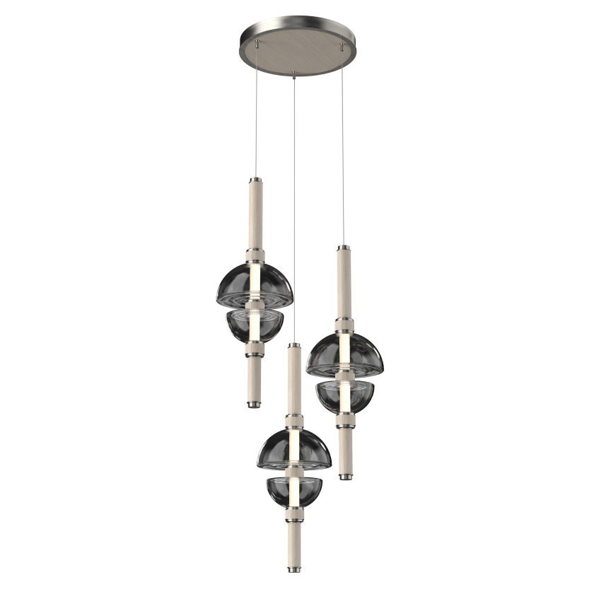 CHA2191A brilliant orchestration of wood, glass and steel in a 3-pendant configuration under a single canopy. Includes adjustable cable suspension and 3,000K integrated LED.